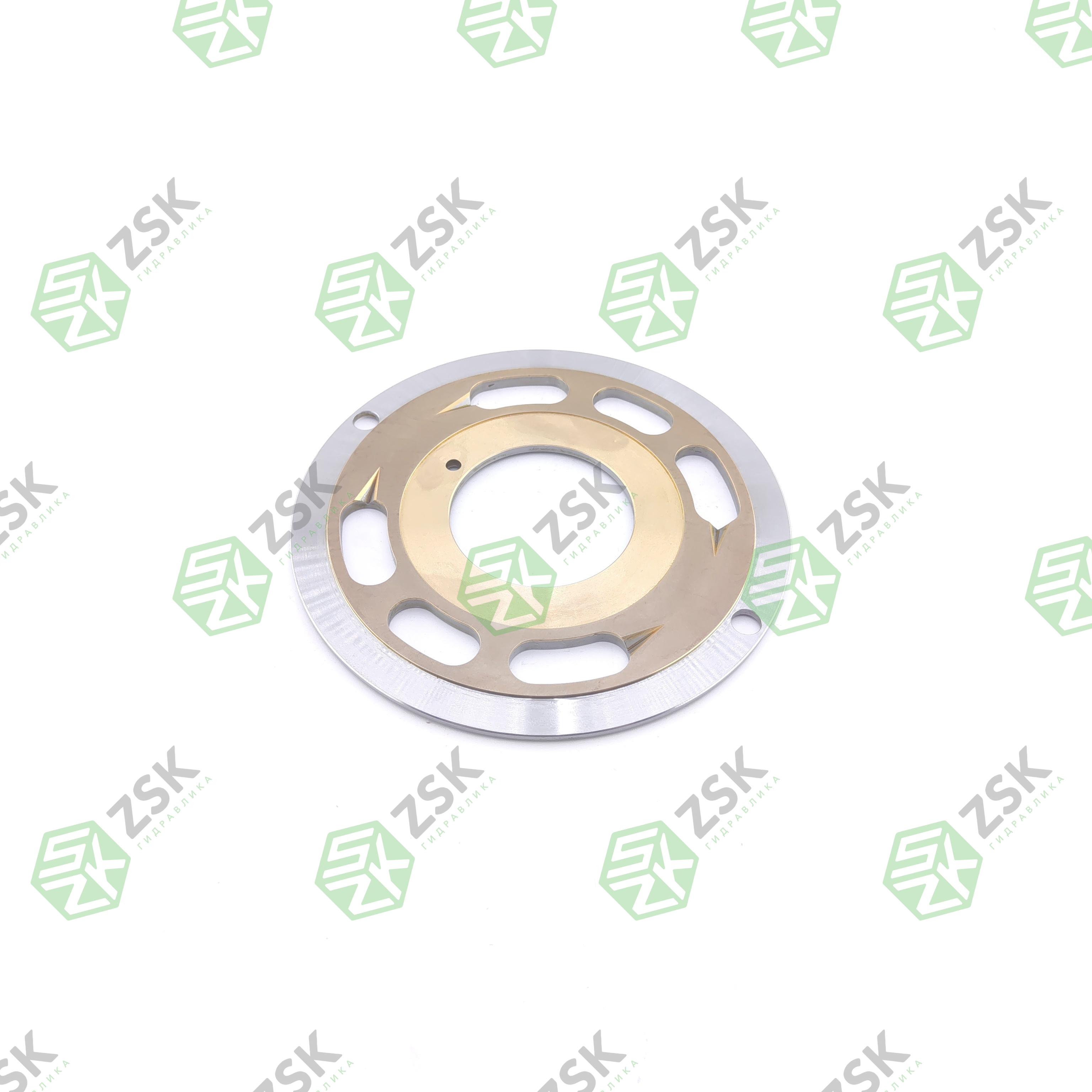 Распределитель имеет форму круга, плоский, с отверстием по центру и окнами для рабочей жидкости. Изготавливается деталь из высокопрочной стали.